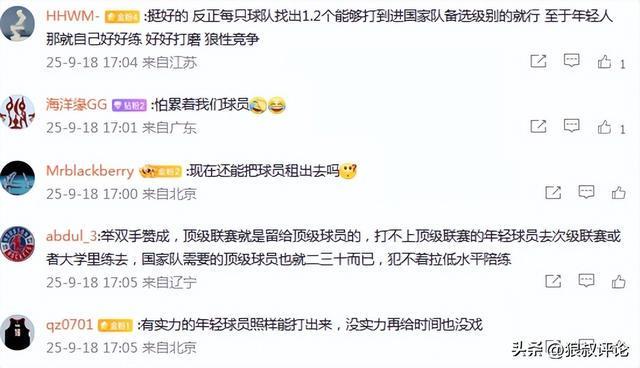 挺好的 反正每支球队找出1.2个能够打到进国家队备选级别的就行 至于年轻人 那就自己好好练 好好打磨 狼性竞争。