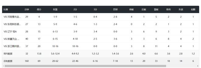 本次全锦赛是王樱霓第一次打职业联赛,她场均32分钟,拿到13.8分6.6篮板3.6助攻1.2抢断,命中率45.1%,三分命中率37.5%,得分排在诸暨赛区第六,篮板排在诸暨赛区第三,这位年仅19岁的小将让上海女篮管理层兴奋不已。