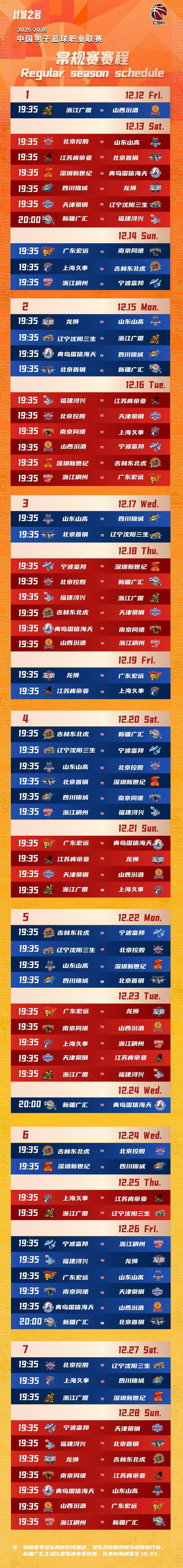根据CBA官方发布的信息来看,新赛季12月12日开始,持续到2026年4月24日收官。