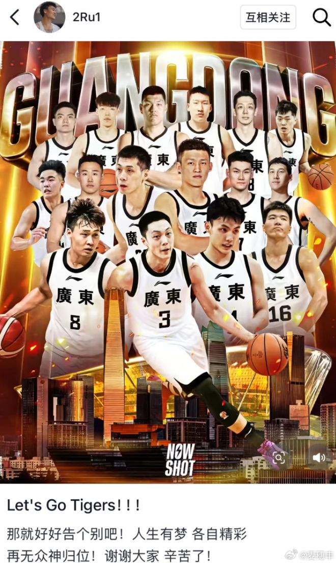 赛后,赵睿更新个人社媒,表示自己已经兑现了对于广东球迷的承诺,把全运会冠军留在家门口,是时候 正式告别了。