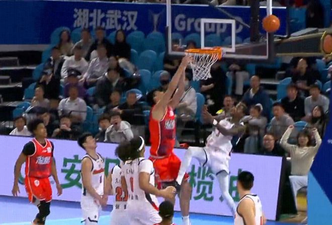 第二节中段,徐昕在内线送出遮天蔽日的大帽。