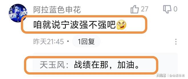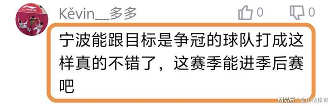 宁波队虽然输球,但却赢得了众多球迷的赞誉。“宁波这赛季可不差啊,前面打的很好”;“别用老眼光看人家”;“宁波能跟目标是争冠的球队打成这样真的不错了,这赛季能进季后赛吧”;“咱就说宁波强不强吧”;“战绩在那,加油。”。“宁波今年打通任督二脉了?”……