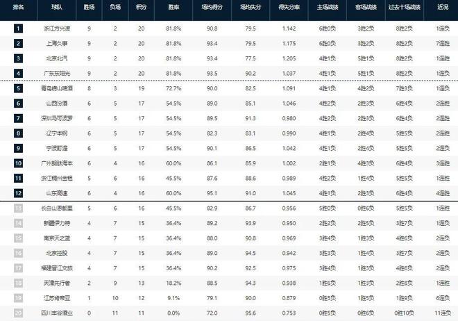 CBA排名大变!上海七连胜势不可挡,北京广东位居四强山东四连胜
