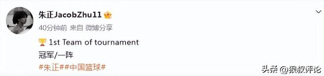 国青混血小将朱正表现出色,拿下18分6板2助攻率队完成夺冠,入选最佳阵容一阵。