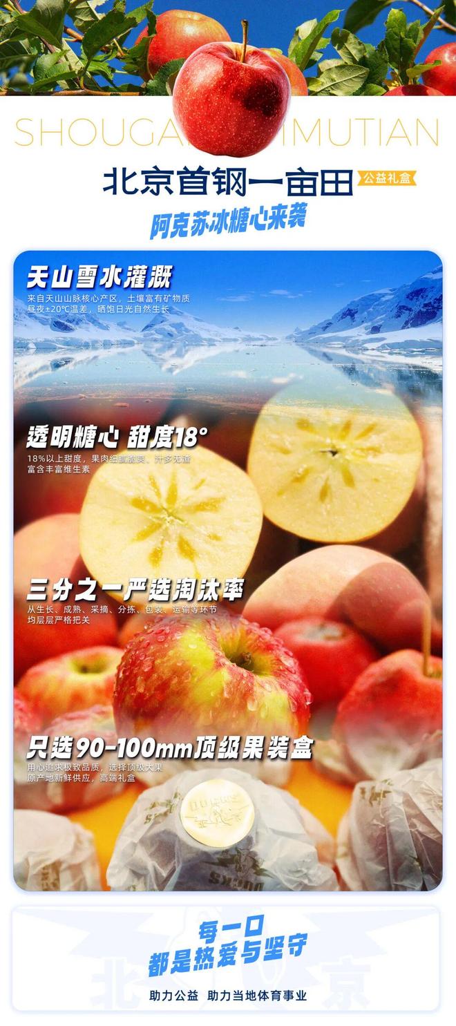 在“北京首钢一亩田”公益计划中,助农只是多元布局的一环。我们精选各地优质特色农产品打造公益礼盒,将售卖收益的一部分汇入专项公益基金,定向用于乡村篮球设施完善、青少年体育支教等项目,搭建起城乡互动、文体共建的温情纽带。与此同时,计划还将拓展至更多公益领域,涵盖体育扶贫、残障人士体育关爱、环保公益等多个方向,让每一份源自篮球的热爱,都能转化为滋养社会的善意力量。