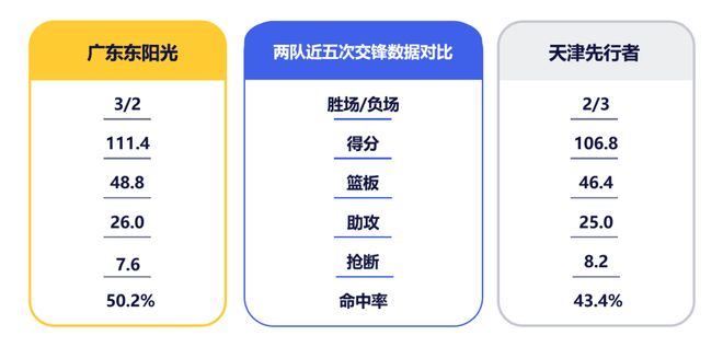 天津队的进攻效率位列第四、场均得分第五,场均助攻也进入前八。首回合并未出战的哈姆雷特以场均23.2分高居联盟第二,更有过单场狂轰40分的亮眼表现;林庭谦场均可贡献19.1分,与哈姆雷特单场可联手送出两位数以上助攻;詹姆斯在队多年,已成为球队进攻体系的关键支点。广东队此战仍需阻断对方核心球员的配合,压缩其出手空间。而在上次交手中,雷诺兹高效砍下全队最高的23分,谷泽浴也有15分进账,对此二人的防守部署也需强化。