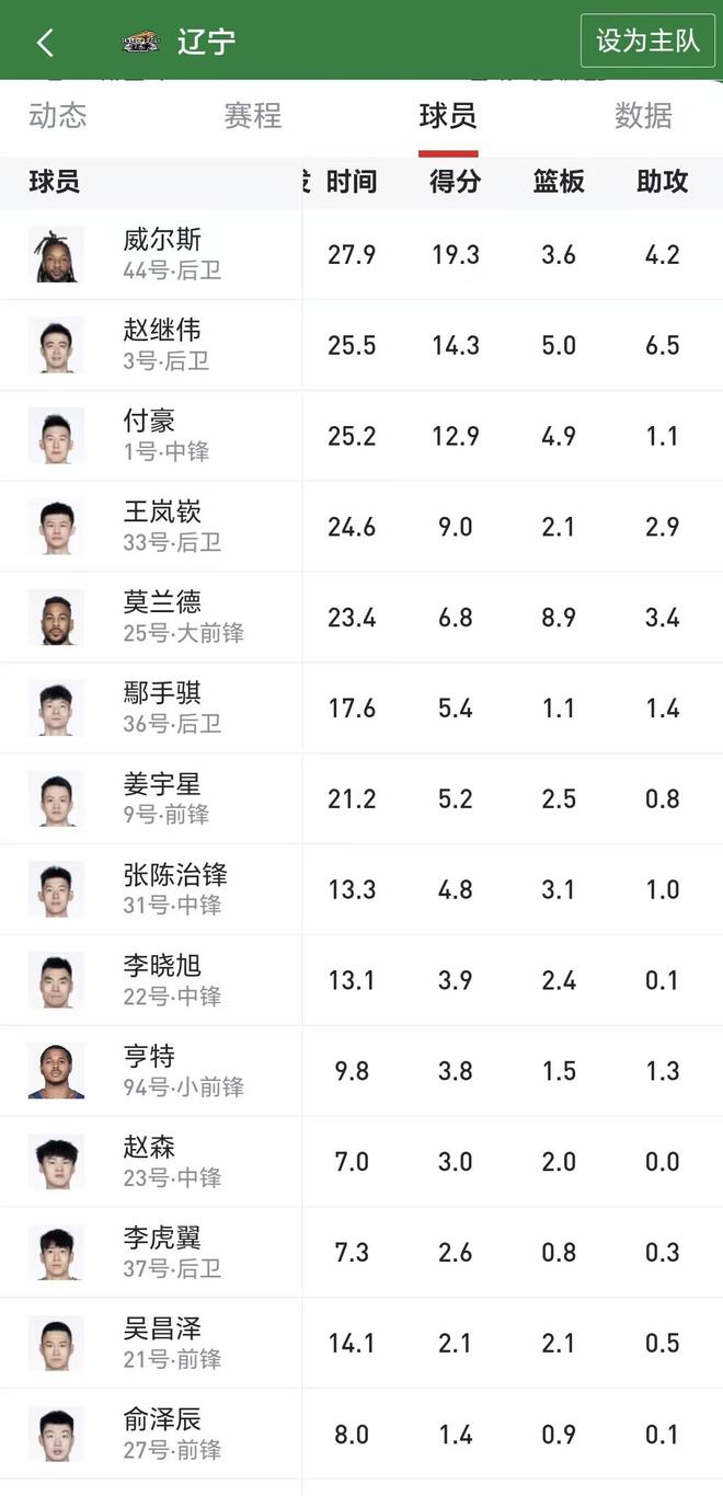 然而在内线失去了擎天柱,锋线失去了高度和运动能力的情况下,辽宁男篮原本重点培养的张峻豪和黄秋实,因为在全运会青年组预赛阶段参与斗殴被长期禁赛,直接打乱了球队的人才培养计划。再加上赵继伟也因为伤病原因到目前为止就打了4场,国内球员的中坚力量只有付豪一人,姜宇星这种被视作即战力的引援,在球场上的发挥也显得非常挣扎。国内球员数据普遍不理想,这直接导致辽篮的国内球员战斗力下降一大块,那就需要外援承担的更多。