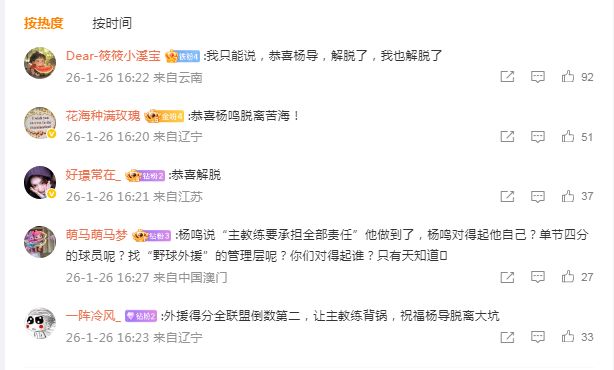 热议杨鸣辞职:官微“恭喜脱离苦海”刷屏火线就业29日解说湖人