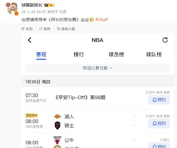 北京时间1月26日,当辽宁男篮官宣杨鸣因为个人身体原因辞职,所有人都明白是“官方说辞”,在辽篮官微下舆论用“恭喜杨鸣脱离苦海”刷屏。至于杨鸣也是火线再就业,将在1月29日解说湖人VS骑士的比赛。