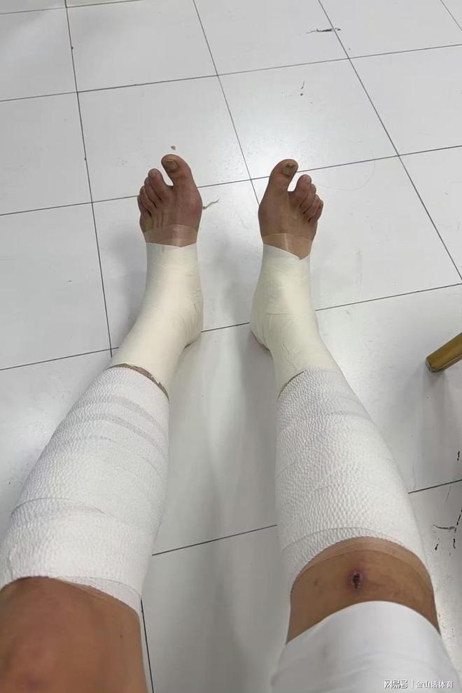 硬汉!32岁老将两腿全拉伤,缠满绷带打20分钟,媒体人真是拼了