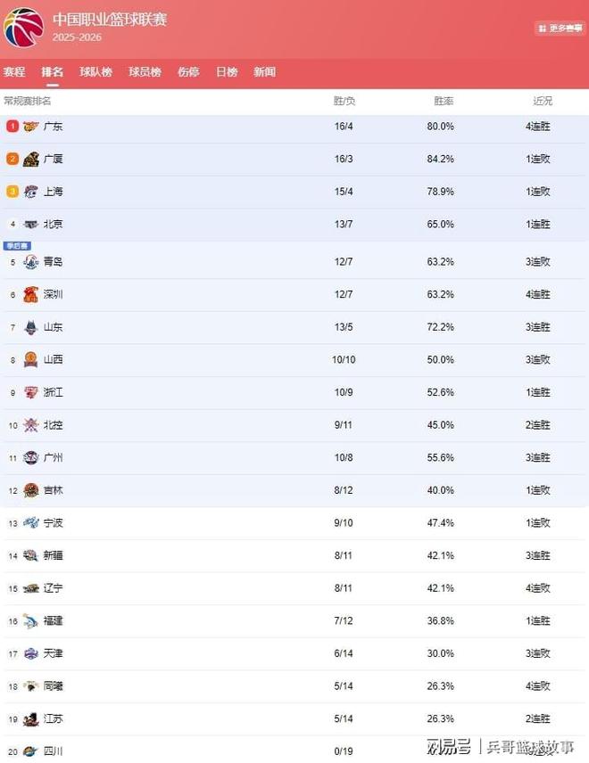 CBA最新排名: