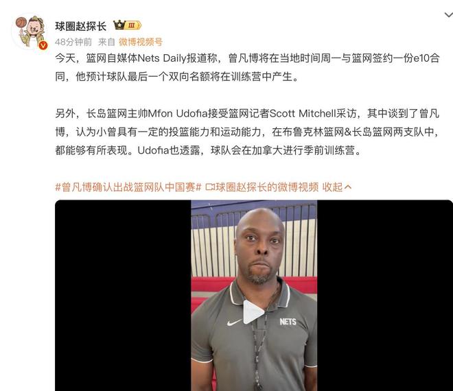 曾凡博进击NBA形势大好,签约+出战时间敲定,篮网教练组高度评价