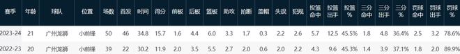 22-24赛季,崔永熙都是在广州队打球,他为该队效力的最后一个赛季,常规赛场均15.7分6板3.3助1.7断;季后赛则是场均16.7分4.3板1.3助1断,投篮命中率达到50.7%。