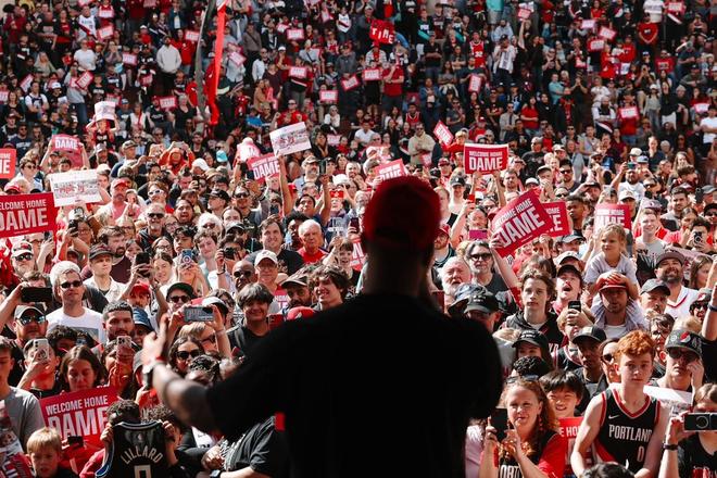 今日,波特兰开拓者为利拉德举办了回归仪式。
