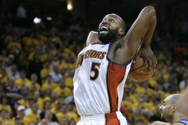 这之后,他选择转会前往勇士队,虽然彼时的勇士队战绩一般,但不得不说,在老尼尔森教练的体系之下,他打的顺风顺水。在06-07赛季,他场均可以贡献20.1分、4.4个篮板、8.1次助攻和2.1次抢断,帮助勇士队拿到了西部第八的排名。而且更令人没有想到的是,在他的率领之下,勇士队击败了那个赛季拿到67胜15负的全联盟第一小牛队,创造了黑八奇迹。而且在西部半决赛面对爵士队的比赛中,他更是在AK47——安德烈·基里连科的头上完成了一记技惊四座的隔扣,时至今日依然是勇士队的经典时刻。