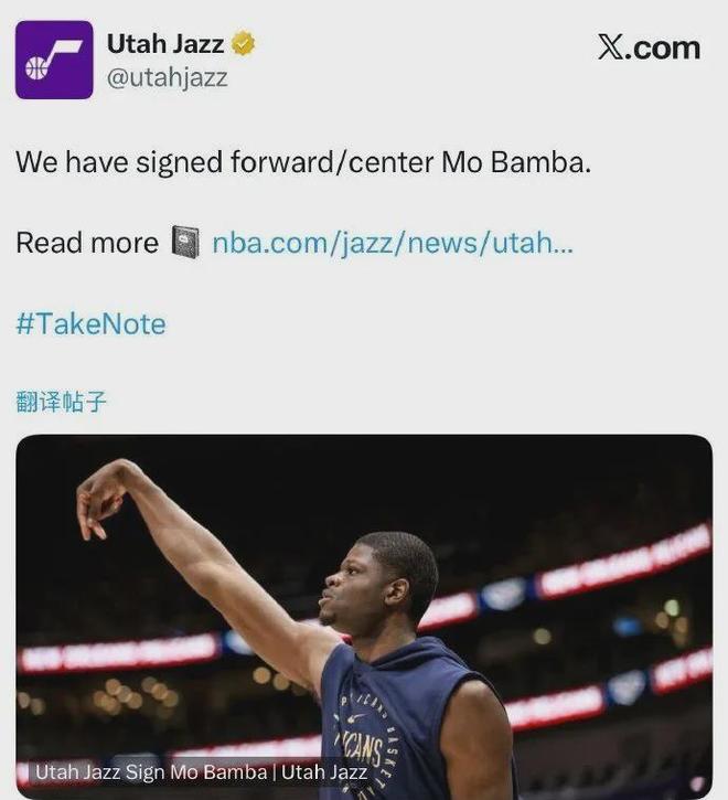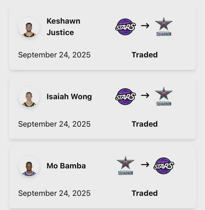 紧接着爵士队记Anderson对此表示,此次签下班巴,是通过他们的发展联盟球队盐湖城星队交易进行的,将以赛亚-王和凯肖恩-贾斯蒂交易至鹈鹕下属球队伯明翰中队,从而换来前者的签约权。
