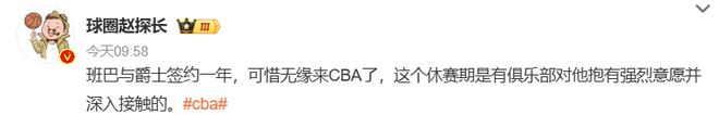 值得一提的是,今夏休赛期有CBA球队对班巴进行了深入接触,可惜最终未能成行,更是有国内媒体人爆料报价为税前薪资能超过300万美元。