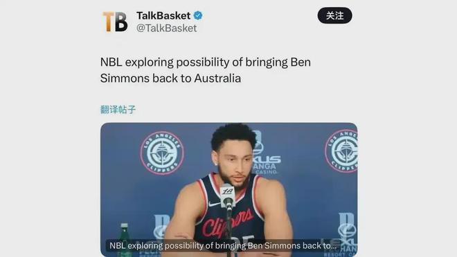 据外媒报道,澳洲联赛NBL正在探索让西蒙斯回归的可能性。