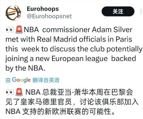 这一消息来自肖华亲口透露,他认为未来可能会看到其他联赛的头部球队进入我们(NBA)季后赛,如果我们在欧洲有一些球队,没道理不这么安排!
