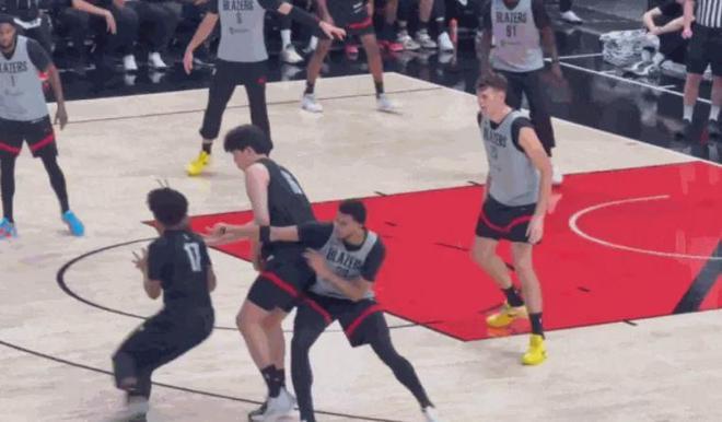 最终全场打完,这一场为开拓者队内公开训练赛,杨瀚森所在的黑队43-42险胜灰队,虽然没有详细的数据统计,但他至少有着5分2助进账,同时可以看出我们这位中国球员会是球队的第二中锋。