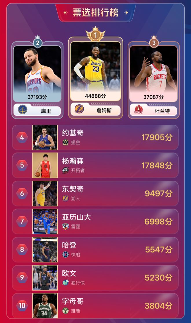 本次活动,通过第一阶段无限PK模式决出胜率前五十位球星,再由第二阶段的票选方式选出老哥们最喜欢的30位球星,最终分数最多的球星,当选NBA新赛季30大球星雷速人气王。