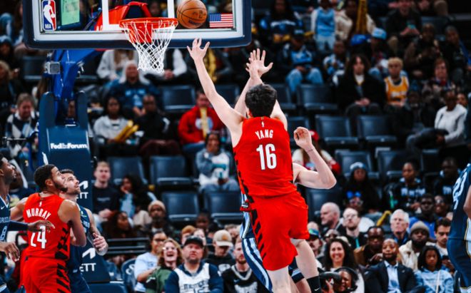 此前一度被下放到发展联盟球队练级的中国球员杨瀚森,今天在开拓者得到了首发的机会。