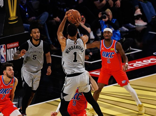 强调两点:第一这只是可能,第二,这是从高阶数据呈现出来的结果,如果真将雷霆放在过去NBA对抗尺度下,他们这些小身板估计受不了。但实话实说,NBA常规赛,对于雷霆已经没任何难度了。赛季前25场比赛赢下24场,只被开拓者逆转过22分;但从12月中旬到下旬,雷霆遇到了克星马刺,三场比赛,第一战2分惜败;第二战输20分,第三战输15分。马刺击败雷霆的方式其实很简单,雷霆不善于限制对手三分(对手打雷霆时三分球命中率37.4%,联盟第6),雷霆也没有前场篮板球保障(本赛季场均前场篮板9.3记,联盟倒数第二)。