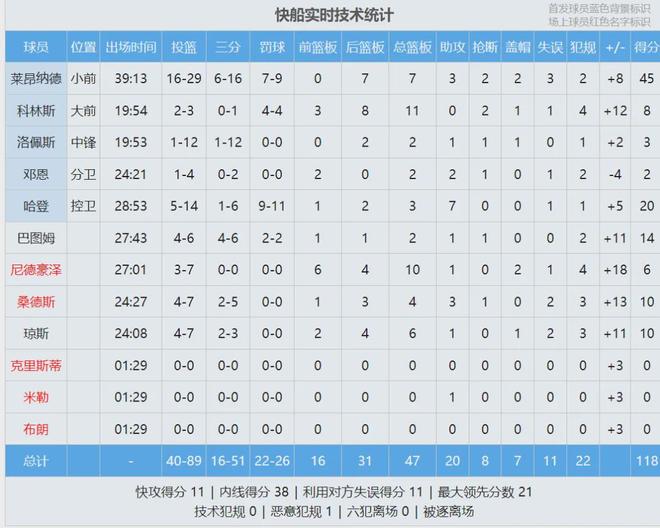 哈登第四节没上场,最终快船118-101大胜爵士,快船6连胜。伦纳德末节14中8独得20分。全场比赛,小卡打了39分钟,投篮29中16,三分16中6,罚球9中7,狂轰45分7板3助2断2帽!哈登20分3板7助;李凯尔22分8板2断2帽。