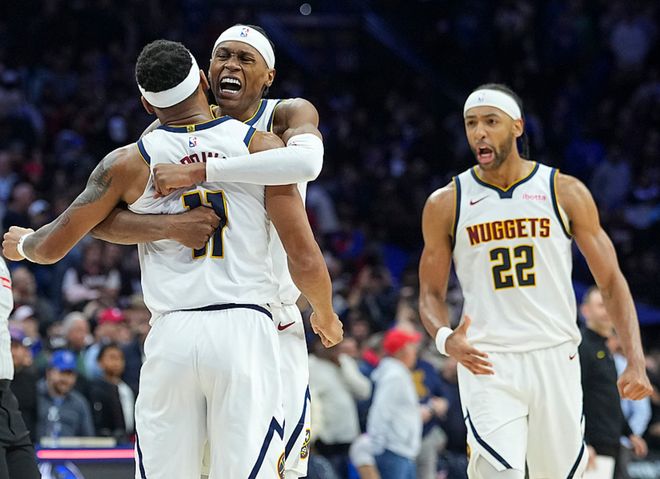 掘金客场挑战76人,掘金是背靠背作战(昨日输给篮网),他们体能不如76人,另外掘金此战约基奇、穆雷、戈登、约翰逊、布劳恩、瓦兰、哈达威都不打,是一个绝对残阵,76人除乌布雷外其他主力都在,本以为76人能轻松赢球,没想到掘金表现出色,把比赛拖入了加时赛,加时赛中靠着布朗还剩5秒时的上篮,掘金1分优势险胜76人,创造了奇迹。皮克特20中11(三分11中7)得到29分5板7助,沃特森13中7得到24分7板4助2帽,纳吉11中7(三分5中4)得到21分8板2断2帽,76人方面恩比德22中13得到32分10板2助,马克西22中10(三分9中4)得到28分6板6助4断。