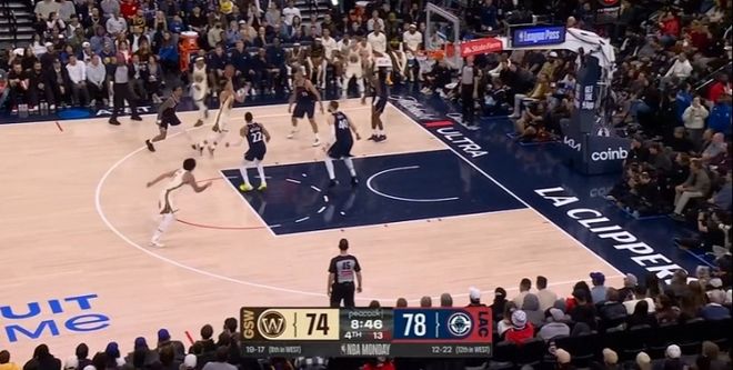 在莱昂纳德三分不进的时候,比赛还剩下最后5.7秒,由于库里已经被罚出场,只能由巴特勒来投绝杀球,结果巴特勒绝杀三不沾,快船抢到关键球,最终以一分险胜。