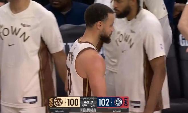 库里在首节中段一度返回更衣室。