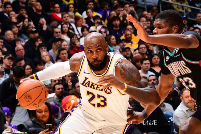 即便如此,灰熊队还是全民皆兵,在半场领先湖人队两位数!一时间,给湖人球迷看呆了。好在下半场,湖人队奋起直追,第三节这儿拿一点分,那边拿一点分,将分差追至个位数。而到了末节之争,詹姆斯开始发力,41岁的他一个人就快把灰熊队的内线给打穿了。而詹姆斯的威慑力,也给湖人队外线带来了大量的机会,于是东契奇连续两记三分命中,而随着詹姆斯快攻打成2+1时,这场比赛基本没什么悬念了。不过灰熊队小将韦尔斯仍然不信邪,各种夸张的干拔三分,让湖人球迷的心又提到了嗓子眼。奈何分差始终在两个回合以外,所以韦尔斯的努力也成了徒劳。