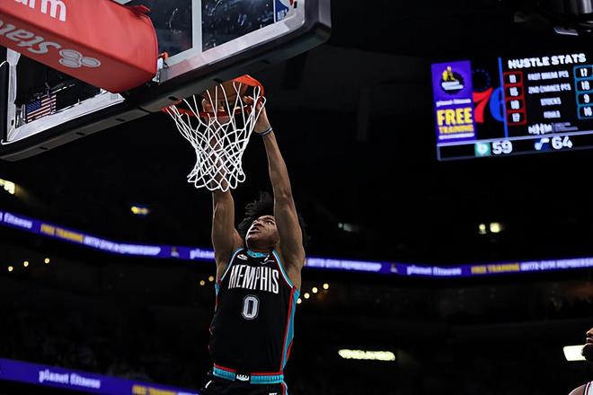 本场比赛中,灰熊的先发侧翼新星杰伦-韦尔斯(Jaylen Wells)的表现还是相当不错的,韦尔斯全场出场24分30秒,投篮16中8,三分线外11中3,罚球4中4,得到了23分1篮板2助攻的数据,还有5次犯规,正负值为-13。韦尔斯在进攻端保持了很高的效率,在手握大量球权和出手机会的情况下,他还是保持了足够的竞争力,在进攻端起到了关键的作用,展现出了全面的得分能力并且拿到了大量的分数。韦尔斯在防守端也是具备不俗的个人防守能力的,同样能够发挥出自己的特点。只是韦尔斯在犯规控制方面存在着明显的问题,这也导致了他的出场时间严重受限,否则他应该还能打出更加华丽的数据,球队可能也会有机会在局面一度不错的情况下拿下胜利。