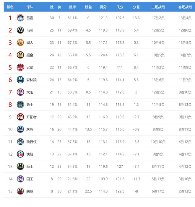森林狼赢球后3连胜,战绩24胜13负,继续排名西部第六,但胜场差已经追平了第五的火箭。