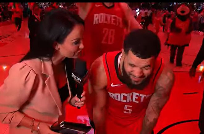 作为火箭主场主持人,瓦妮莎本赛季多次采访火箭主力球员,并且有过不少名场面,例如当时采访范弗利特(单场轰下37分)。