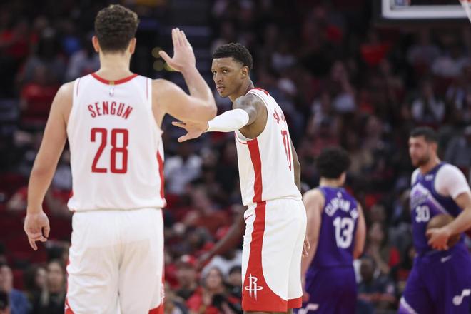 自从两位锋线悍将芬尼·史密斯和伊森复出之后,火箭队整体的攻防强度得到提升。之前芬尼·史密斯和伊森不在,火箭队只能靠着申京和杜兰特单打,球队很少有配合,外线的三分射手群也不够稳定。有的时候他们能将三分命中率提升到40%以上,有的时候在一些输球的比赛里,火箭队的三分命中率可能只有20%多,根本没法赢球。