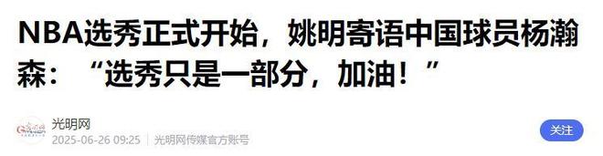 参考资料:光明网《NBA选秀正式开始,姚明寄语中国球员杨瀚森:“选秀只是一部分,加油!”》