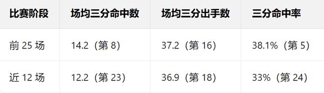 而本次12场的低迷期,再次印证了雷霆队外线投射的飘忽不定。