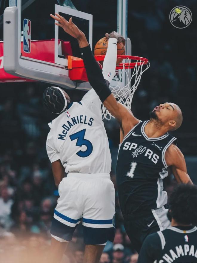 第四节决战,变成火星撞地球。爱德华兹天神下凡,末节森林狼前29分当中,有21分来自爱德华兹。比赛还剩3分30秒,华子跳投帮助森林狼反超了。福克斯和文班站出来回应,马刺开始疯狂夹击华子,迪温琴佐连中两记三分。