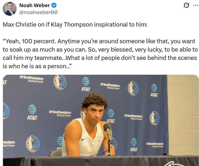 队友克里斯蒂被问到是否被克莱感染时说道:“没错,千真万确,当你身边有这种人时,你就会想尽办法多向他学习,能和克莱成为队友真的很幸运,我对此非常感恩,很多人看不到赛场之外的他,究竟是个多好的人。”
