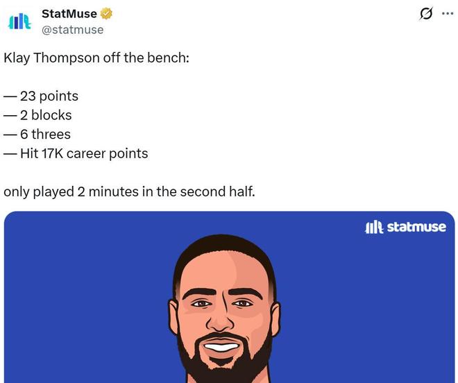 值得一提的是,6记三分与23分全部来自于上半场,下半场克莱脚踝疑似有些不舒服,加上末节比赛早早被打花,基德出于保险起见让克莱直接三节打卡。