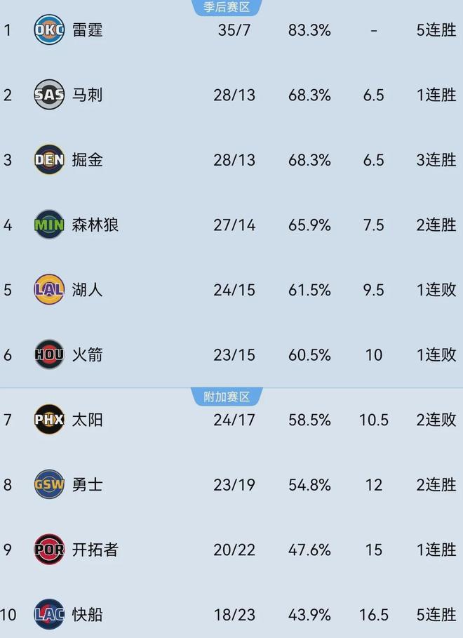 等等,快船竟然以18胜23负升至了附加赛区域......北伐之路,正式开启。