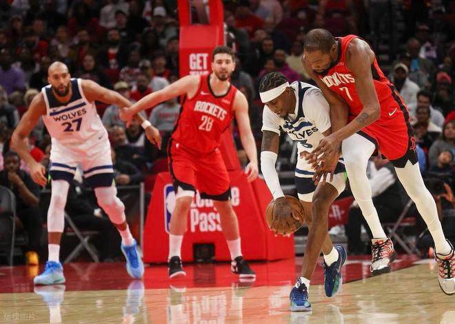 NBA常规赛,火箭坐镇主场迎击森林狼。本场比赛之前,火箭23胜15负排名西部第6,近段时间他们状态不佳,20分狂输雷霆就算了,还被开拓者双杀,打西部倒数的国王都打不过。最主要的原因,在于他们的投射完全崩盘,根据数据统计,火箭近7场三分命中率24.6%,NBA历史同时段最低,这个小球时代没有三分球怎么行,即使你拥有再好的身体天赋,没投射也是白给。此外,火箭还存在战术体系太单一,缺乏控球组织者等问题。另一边的森林狼,本场比赛之前,27胜14负排名西部第4,作为西部超级大黑马之一。