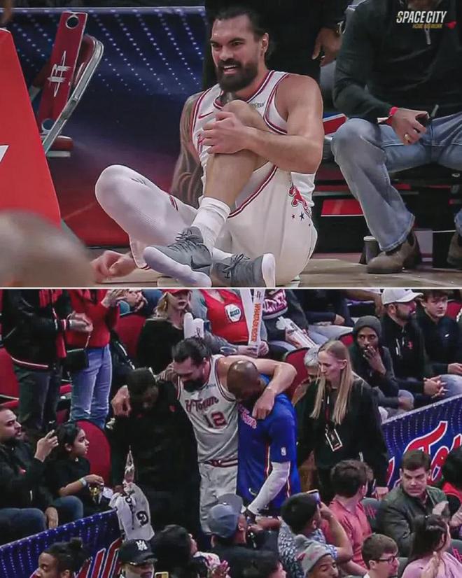 第四节还剩9分50秒,亚当斯起跳封盖锡安时,不慎崴脚受伤。他无法自主行走,直接被搀扶回更衣室。回放镜头没有看到脚部特写,无法判断崴脚的严重程度。火箭主帅乌度卡赛后说:“亚当斯没有骨折,但他的脚踝已经肿得厉害。”