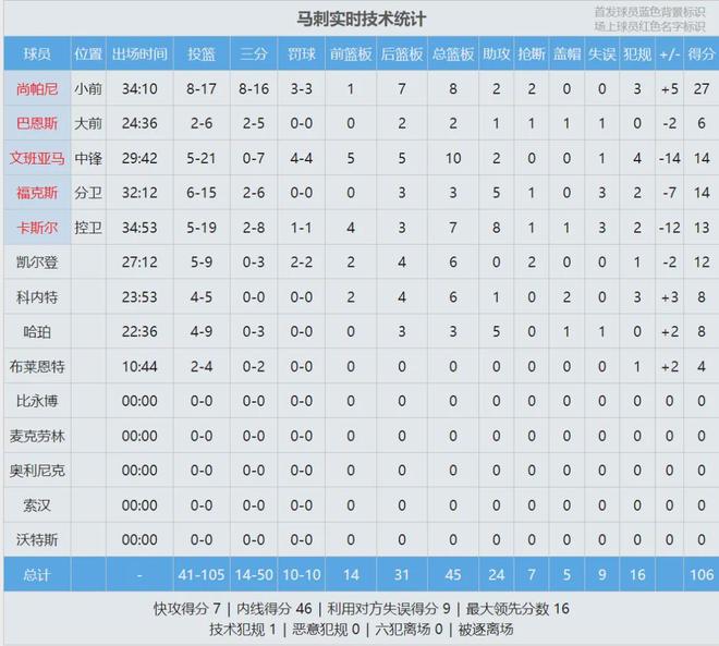 自文班剃头之后,此前3胜0负,今天第一次输球。最后看看数据,说说感受: