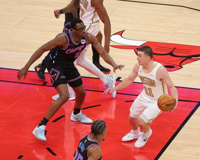 进入第四节比赛,双方继续紧咬比分缠斗,持续拉锯至凯尔特人105-106仅落后1分。布泽利斯三分命中,德里克-怀特上篮得分,武切维奇内线得分,布朗抛射命中加罚不中。史密斯扣篮不中,布朗一条龙上篮追到111-111。赫尔特还剩0.2秒精彩三分准绝杀,普里查德超远空接三分不中,最终凯尔特人惜败公牛。
