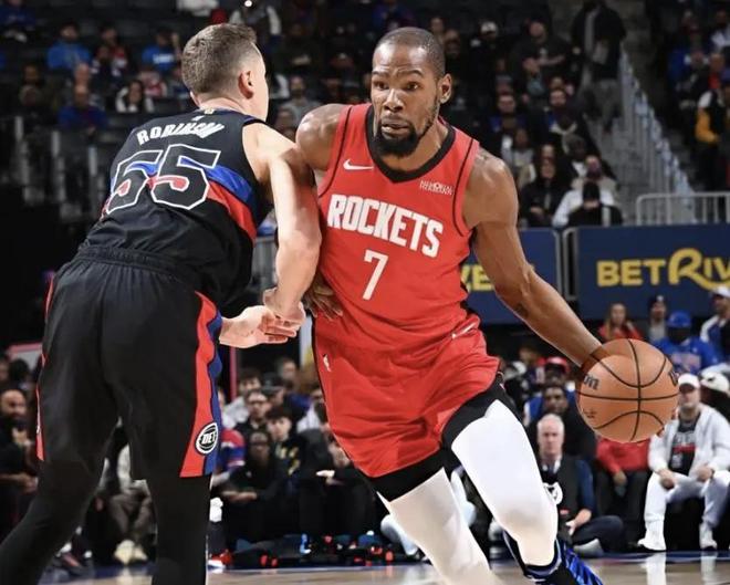 要说今天NBA最劲爆的戏码,必须是火箭111-104掀翻活塞的比赛!赛前谁能想到,刚输球的火箭能终结东部第一的四连胜?更让人惊掉下巴的是,37岁的杜兰特背靠背打了足足85分钟,全场19投11中轰下32分7篮板3助攻,全程0失误,正负值+18全场最高,硬生生用一己之力打服了对手。可赛后的舆论场却彻底分裂:一边是活塞主帅比克斯塔夫的“绝望吐槽”,一边是火箭名嘴对申京的“火力全开”,这场胜利到底是杜兰特的独角戏,还是申京真的拖了后腿?