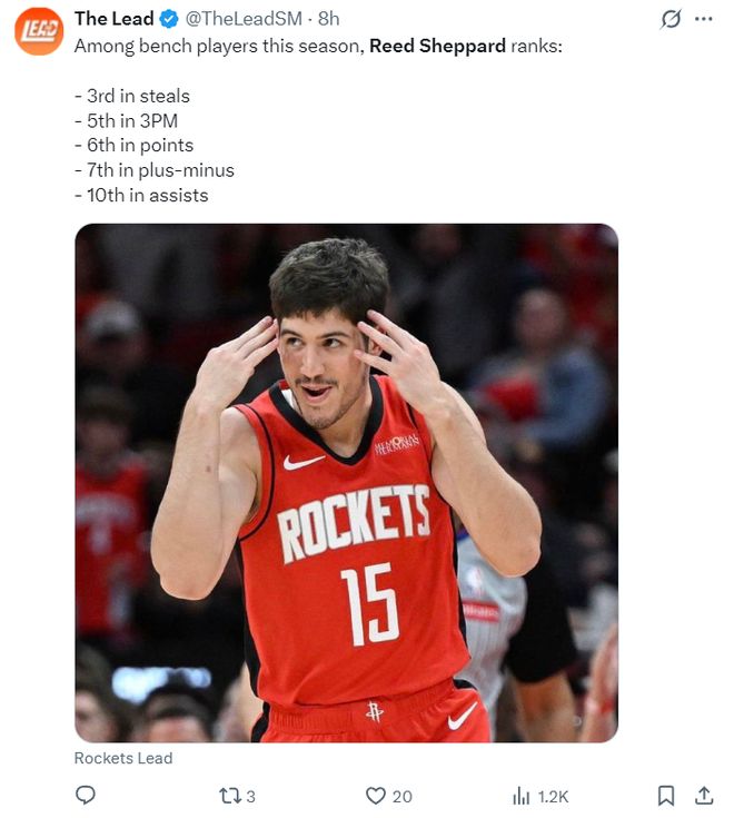 在本赛季替补球员中,谢泼德抢断第三、三分命中个数第五、得分第六、正负值第七、助攻第十。本赛季谢泼德很有希望竞争最佳第六人,那么谢泼德未来是不是有希望复刻詹姆斯-哈登的路径?
