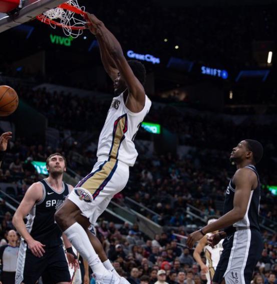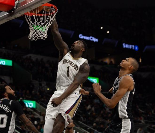 锡安两双力挽狂澜,文班亚马空砍16+16+4封盖,马刺不敌西部倒一