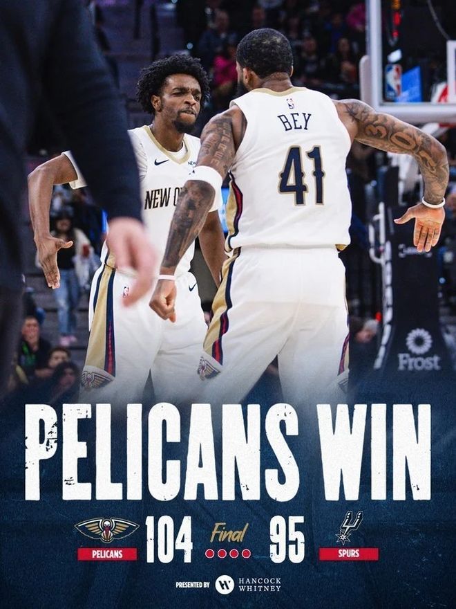 北京时间1月26日,NBA常规赛马刺主场对阵鹈鹕,状元对决文班亚马遭锡安压制,马刺也是被压制最多时刻落后20分差距。文班亚马逐步回暖率领马刺持续反扑,尤其是在末节一波流碾压反超5分,鹈鹕最后阶段内外开花一波17-3夺回领先优势逆袭,最终马刺95-104爆冷输给鹈鹕无缘赛季横扫,鹈鹕收获2连胜。
